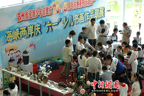作為蘇州滄浪少年宮35周年慶典的一部分,海峽兩岸“六一”書畫作品聯(lián)展用120幅作品搭建起了一個兩岸少年兒童溝通的橋梁。