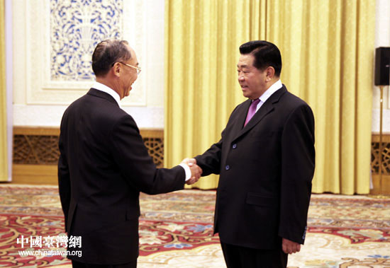12月9日下午,中共中央政治局常委、全國政協(xié)主席賈慶林在北京會見以錢復(fù)為團(tuán)長的臺灣金融代表團(tuán)一行。(中國臺灣網(wǎng) 鐘寶華 攝)