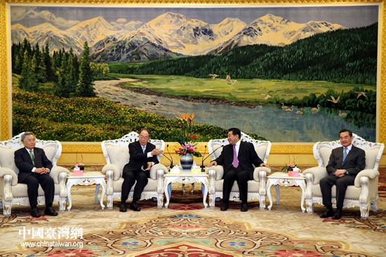 12月9日下午,中共中央政治局常委、全國政協(xié)主席賈慶林在北京會見以錢復(fù)為團(tuán)長的臺灣金融代表團(tuán)一行。中共中央臺辦、國務(wù)院臺辦主任王毅陪同會見。(中國臺灣網(wǎng) 鐘寶華 攝)