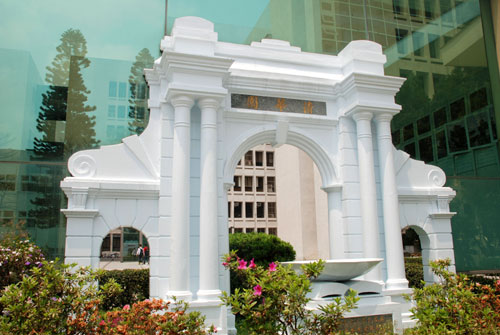 新竹清華大學(xué)行政大樓后方有個(gè)拱門(mén)造型的“清華園”,這是以北京清華二校門(mén)清華園1/3比例縮小制作的,展現(xiàn)兩岸清華的血脈淵源。 圖片來(lái)源:“中央社”