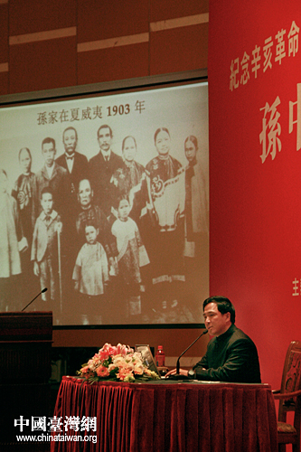 演講過程中,王祖耀先生向大家展示了孫家珍貴的資料圖片。(中國臺灣網(wǎng) 普燕攝)