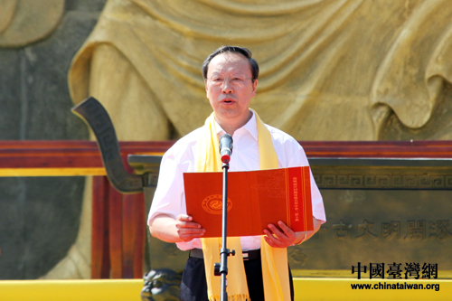 全國(guó)政協(xié)副主席、中央統(tǒng)戰(zhàn)部部長(zhǎng)杜青林宣布第四屆海峽兩岸同胞涿鹿共祭中華三祖大典正式開始。(中國(guó)臺(tái)灣網(wǎng) 王偉 攝)