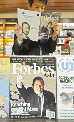 《福布斯》雜志評選亞洲50大企業(yè),旺旺集團首次入選,內(nèi)容專訪董事長蔡衍明并選用照片為封面。(圖片來源:臺灣《中國時報》)