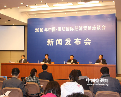 4月23日下午,2010年中國·廊坊國際經(jīng)貿(mào)洽談會新聞發(fā)布會在國務(wù)院新聞辦新聞發(fā)布廳舉行。(中國臺灣網(wǎng) 趙靜 攝)
