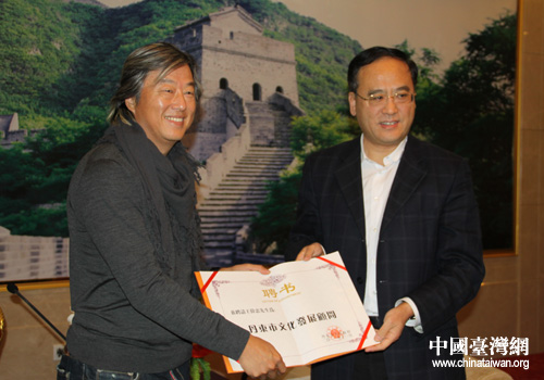 中國(guó)臺(tái)灣網(wǎng)11月17日丹東消息 日前,丹東市代市長(zhǎng)石光在丹東賓館會(huì)見了臺(tái)灣金星娛樂事業(yè)有限公司總經(jīng)理王偉忠、臺(tái)灣海悅廣告股份有限公司董事長(zhǎng)黃希文等臺(tái)灣客人,并聘請(qǐng)王偉忠、黃希文為“丹東市文化發(fā)展顧問(wèn)”,向二人頒發(fā)了聘書。