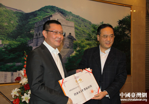 黃希文先生(左)受聘(圖片來(lái)源:丹東市臺(tái)辦)