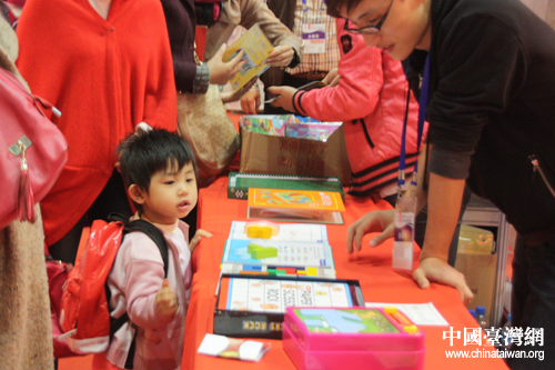 2011年重慶臺灣名品博覽會于11月17日至20日在重慶國際會展中心舉行,圖為小朋友在家長帶領下參加展會。(中國臺灣網(wǎng) 楊麗 攝)