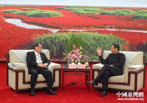 盤錦市市長(zhǎng)同臺(tái)灣中油公司董事長(zhǎng)朱少華座談。(圖片來(lái)源:盤錦市臺(tái)辦)