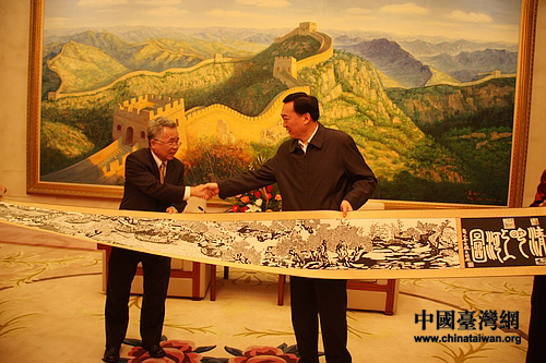會(huì)見(jiàn)后雙方互贈(zèng)禮物時(shí),無(wú)意中顯示出驚人的默契。河北省贈(zèng)予臺(tái)灣金融團(tuán)的,是一幅傳統(tǒng)剪紙工藝版的“清明上河圖”長(zhǎng)卷,而金融團(tuán)從臺(tái)灣專程帶來(lái)的禮物,竟然也是“清明上河圖”——一幅由金箔制成的精致作品。這“心有靈犀”的小意外,讓主賓雙方都不禁會(huì)心一笑。(中國(guó)臺(tái)灣網(wǎng) 記者 馬迪)
