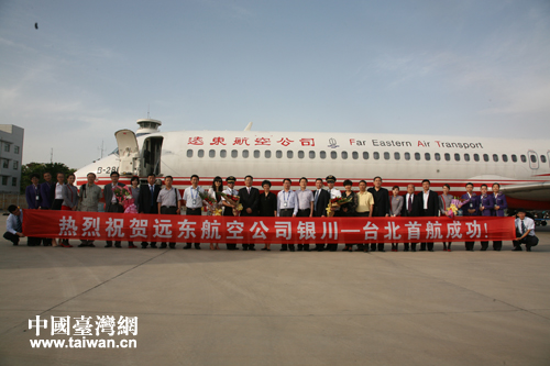中國(guó)臺(tái)灣網(wǎng)5月14日銀川消息 5月12日下午18時(shí)20分,一架滿載165位乘客的麥道82客機(jī),自寧夏銀川河?xùn)|機(jī)場(chǎng)騰空而起,拉開(kāi)了臺(tái)灣遠(yuǎn)東航空公司寧夏銀川-臺(tái)灣桃園的定期直航序幕。自此,臺(tái)灣遠(yuǎn)東航空公司正式進(jìn)駐寧夏市場(chǎng)。