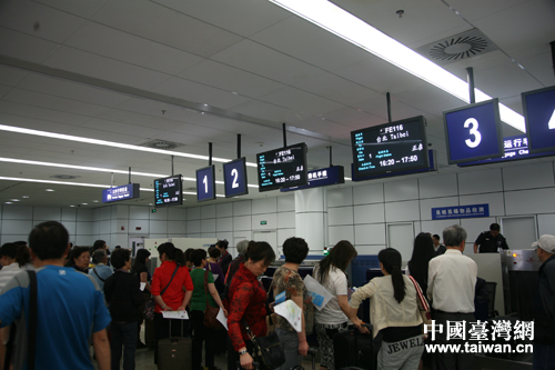 搭乘遠(yuǎn)航飛赴臺(tái)灣的旅客辦理登記手續(xù)。(圖片來(lái)源:寧夏臺(tái)辦)