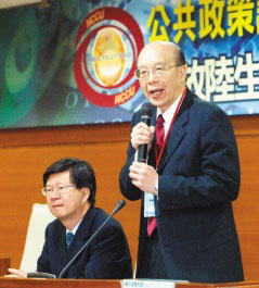 開放陸生來臺對臺灣教育、文化、經(jīng)濟的沖擊研討會,昨天在政大公企中心舉行,臺大校長李嗣涔(右)、政大校長吳思華(左)都參加會議,山東大學副校長樊麗明會中表示,獎學金將決定臺灣能找到什么樣的學生。圖片來源:臺灣《聯(lián)合報》