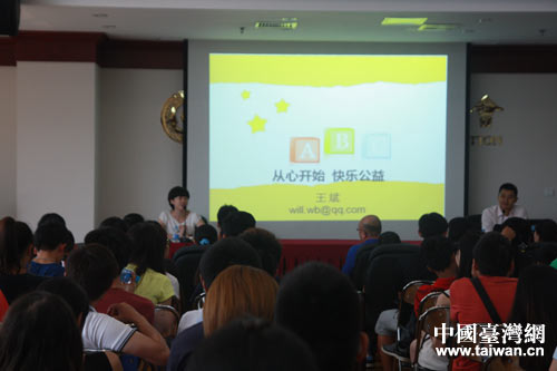 中國(guó)臺(tái)灣網(wǎng)7月31日北京消息 2013年暑期兩岸青年學(xué)生交流活動(dòng)今天下午在宋慶齡基金會(huì)舉行公益講座,來(lái)自西南科技大學(xué)的王斌副教授與臺(tái)灣青年學(xué)生共同交流,在教學(xué)中分享公益理念,向兩岸學(xué)生講解心理救助的重要性。
