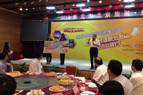 隨后,侯友宜在現(xiàn)場舉辦了激動人心的現(xiàn)場抽獎大會,抽取了新北市旅游“免費機票+酒店+觀光出租車”代金券,中國臺灣網(wǎng)副總編吳彤獲得了大獎。侯友宜還告訴北京市民一個好消息,就是在接下來的北京旅展中,除了有伴手禮品試吃、參加現(xiàn)場小活動送贈品以外,前1688名購買新北市旅游“免費機票+酒店+觀光出租車”客制化套裝游程優(yōu)惠方案者還可以抽大獎,并且都可以享受優(yōu)惠價格5小時游覽新北市景點,以觀光出租車的貼心導(dǎo)覽服務(wù)來新北旅游。