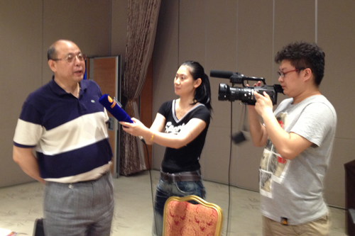 中國臺灣網(wǎng)副總編吳彤抽獎獲得新北市旅游代金券,接受媒體現(xiàn)場采訪。(中國臺灣網(wǎng) 孫伊靜 攝)