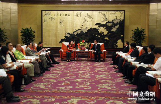 8月20日上午,在北京訪問的臺灣少數(shù)民族代表團在高金素梅的率領(lǐng)下拜會中國青少年發(fā)展基金會。(中國臺灣網(wǎng) 鐘寶華 攝)