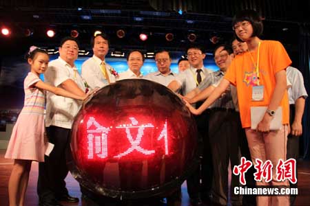 臺渝兩地師生等代表一同啟動“兩岸同心——巴渝文化參訪周”水晶球。 連肖 攝