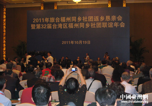 中國(guó)臺(tái)灣網(wǎng)10月20日福州消息 19日下午,“2011年旅臺(tái)福州同鄉(xiāng)社團(tuán)返鄉(xiāng)懇親會(huì)暨第32屆臺(tái)灣區(qū)福州同鄉(xiāng)社團(tuán)聯(lián)誼年會(huì)”在福州香格里拉大酒店福州廳正式拉開(kāi)帷幕。來(lái)自臺(tái)灣21個(gè)旅臺(tái)福州同鄉(xiāng)社團(tuán)的155名福州籍臺(tái)灣鄉(xiāng)親參會(huì),臺(tái)灣肥料公司董事長(zhǎng)鐘榮吉,民意代表曹爾忠,馬祖縣縣長(zhǎng)楊綏生,臺(tái)灣彰化師范大學(xué)校長(zhǎng)張植珊等福州籍臺(tái)灣知名人士應(yīng)邀參會(huì)。