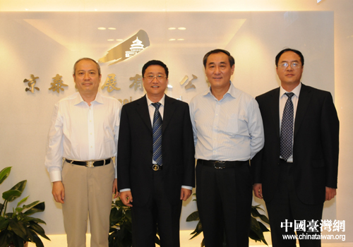 與京泰公司座談(左一為北京東城區(qū)委常委、統(tǒng)戰(zhàn)部長邵鵬,左二為京泰集團(tuán)總經(jīng)理雷振剛先生,左三北京東城區(qū)政協(xié)主席徐鴻達(dá),左四京泰公司副總杜建斌)(圖片來源:北京東城區(qū)臺辦)