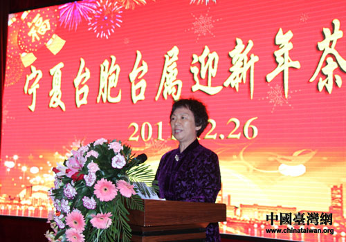 寧夏回族自治區(qū)黨委副秘書長、臺(tái)辦主任張秀燕在茶話會(huì)上致辭。(圖片來源:寧夏臺(tái)辦)