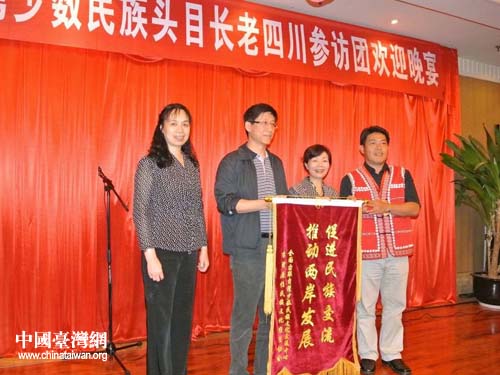 在歡迎晚宴上,全國臺聯(lián)臺灣少數(shù)民族文化交流中心和臺灣原住民族文化經(jīng)貿(mào)協(xié)會還向四川省臺聯(lián)贈送了“促進(jìn)民族交流、推動兩岸發(fā)展”的錦旗,感謝四川有關(guān)方面在推動兩岸少數(shù)民族交流交往中所作的貢獻(xiàn)。