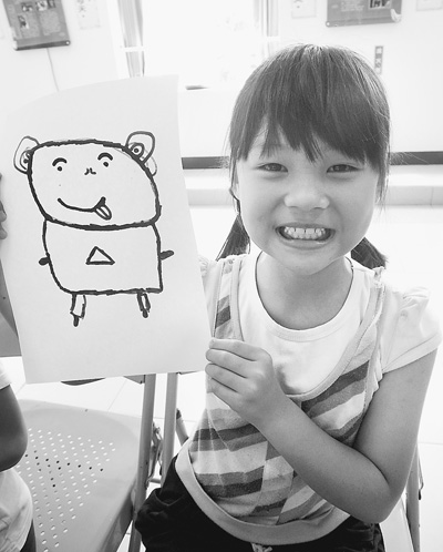 在大學(xué)生志愿者指導(dǎo)下,孩子“秀”出自己的作品。臺師大提供