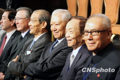 11月13日,為期兩天的“兩岸一甲子”學(xué)術(shù)研討會(huì)在臺(tái)北開(kāi)幕。由于一百一十多位兩岸與會(huì)學(xué)者中,有多位接近兩岸決策核心的重量級(jí)智囊學(xué)者,而探討的是兩岸在政治、經(jīng)濟(jì)、文化、軍事、涉外事務(wù)等領(lǐng)域的諸多敏感議題,研討會(huì)廣受媒體關(guān)注。圖為中國(guó)戰(zhàn)略與管理研究會(huì)會(huì)長(zhǎng)、中共中央黨校原常務(wù)副校長(zhǎng)鄭必堅(jiān)(右三),中國(guó)孫子兵法研究會(huì)名譽(yù)會(huì)長(zhǎng)李際均(右一)等與會(huì)專家學(xué)者合影。 中新社發(fā) 黃少華 攝