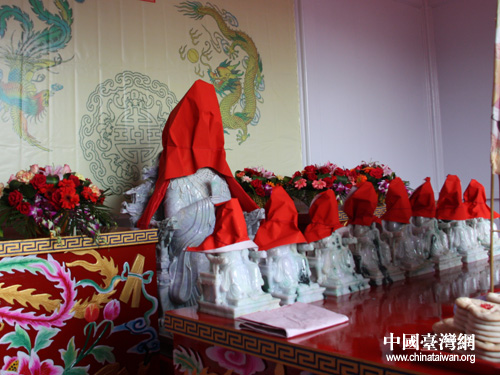 10日下午,湄洲媽祖祖廟受贈翡翠媽祖像儀式,在莆田市湄洲島天后廣場舉行,圖為開光典禮前的翡翠媽祖像。(中國臺灣網(wǎng) 楊麗 攝)