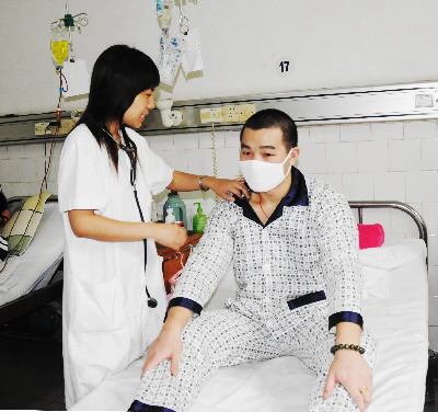 昨日,徐雅靖給劉小偉進(jìn)行入艙前的檢查。檢查顯示,劉小偉已進(jìn)入了移植前的最好狀態(tài)。 嚴(yán)慧平 攝