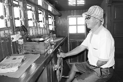 獨(dú)臂臺輪船長夏明架正在駕船。