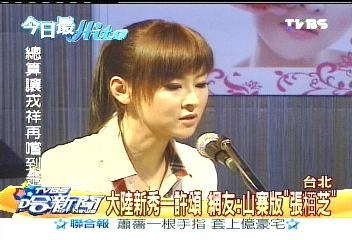 許頌在安徽電視臺節(jié)目“超級偶像”歌唱比賽奪冠,因外型與港星張柏芝相似度極高,走紅大陸演藝圈。她4月來臺參加“綜藝大哥大節(jié)目”錄影,因而認(rèn)識紅遍兩岸的劉謙。