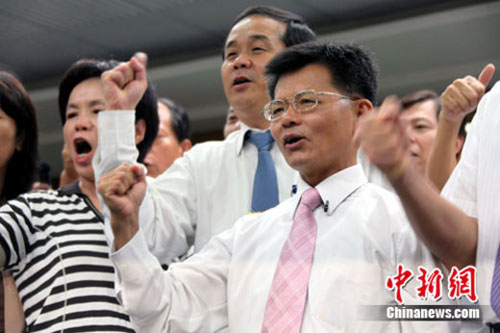 資料圖:去年8月9日,高雄縣縣長楊秋興宣布,他自行退出民進黨,以無黨籍身份參加高雄縣市合并后的大高雄市長選舉。中新社發(fā) 劉舒凌 攝