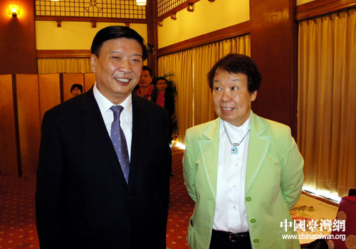 山東省長姜大明與臺灣《天下》雜志董事長殷允芃親切交談(圖片來源:山東省臺辦)