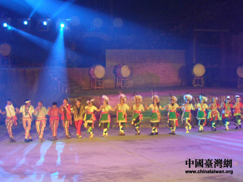 在天下鳳凰森林大劇場(chǎng),臺(tái)灣代表隊(duì)表演《豐年舞曲》(圖片來源:湖南省臺(tái)辦)