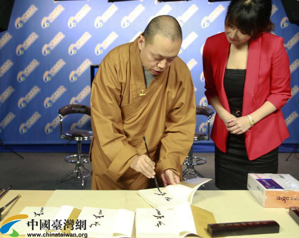 延參法師為新書簽名(中國臺灣網(wǎng) 王偉 攝)