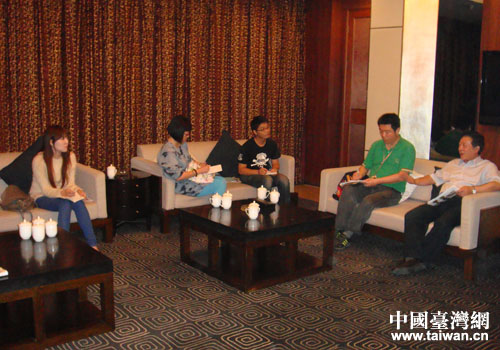 記者采訪市領(lǐng)導(dǎo)(圖右一)。(圖片來源:安徽省臺辦)