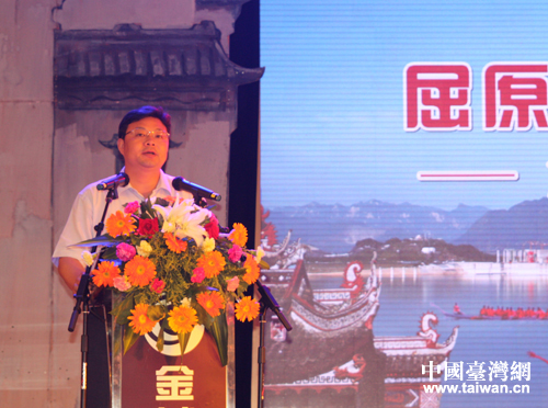 “屈原秭歸 三峽大壩”旅游產(chǎn)品形象發(fā)布會(huì)在秭歸縣舉辦,秭歸縣縣長(zhǎng)盧輝在會(huì)上致辭。(中國(guó)臺(tái)灣網(wǎng) 李杰 攝)