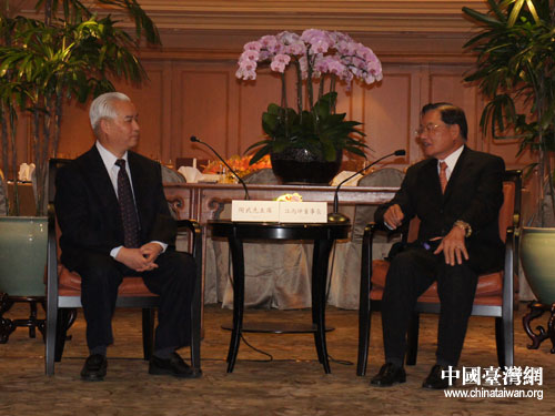 四川省政協(xié)主席陶武先在臺北會見海基會董事長江丙坤。圖片來源:四川省臺辦