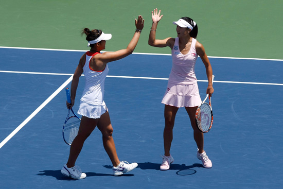 “兩岸組合”以2比1擊敗對手——俄羅斯女將克莉蘭柯與波蘭選手拉德旺絲卡的“俄波聯(lián)軍”,三盤的比數(shù)分別是6:0、4:6與10:7。