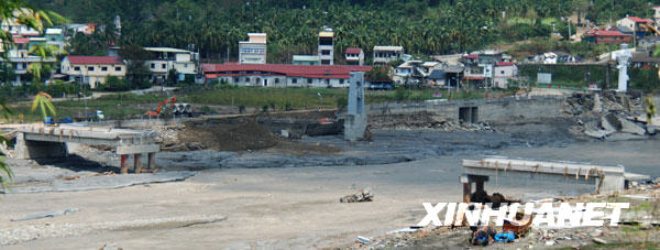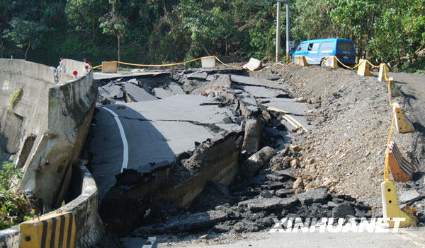 “莫拉克”臺風(fēng)造成的山洪使南臺灣六龜鄉(xiāng)路橋損毀嚴重,外聯(lián)道路中斷,鄉(xiāng)內(nèi)各村之間道路也“支離破碎”,部分地區(qū)還受到堰塞湖的威脅。新華社發(fā)(吳景騰 攝)