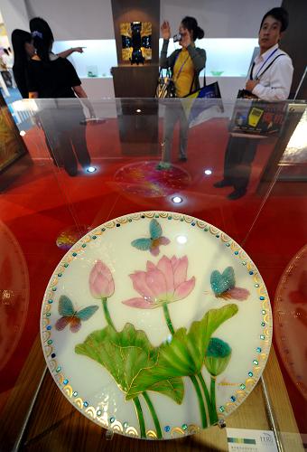9月17日,觀眾在臺灣工藝品展位前參觀。新華社記者 孫參 攝