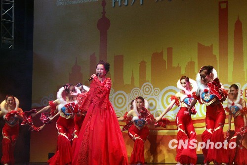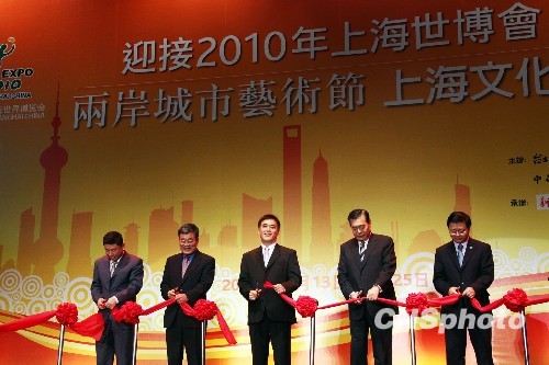 10月16日晚,“相約上!2010年上海世界博覽會”圖片展在臺北市最繁華的信義新天地“香堤大道”揭幕,臺北市長郝龍斌、臺北世貿(mào)中心董事長王志剛等剪彩。作為兩岸城市藝術節(jié)臺北上海文化周的一項重要內(nèi)容,該展覽以靜態(tài)的圖片展示輔之以熱鬧多樣的廣場綜藝演出,吸引不少臺北市民駐足觀看,上海世博會走進臺北的推介勢頭良好。中新社發(fā) 黃少華 攝