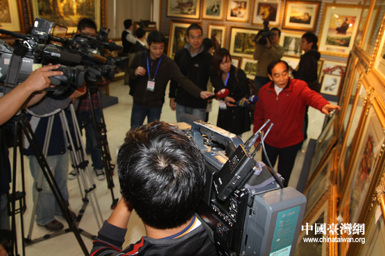 臺灣媒體“圍攻”湘繡大師艾玉奇老先生(中國臺灣網(wǎng) 陳寧 攝)