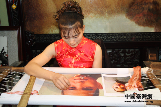 湘繡的人物作品栩栩如生,宛如一幅油畫作品(中國臺灣網(wǎng) 陳寧 攝)