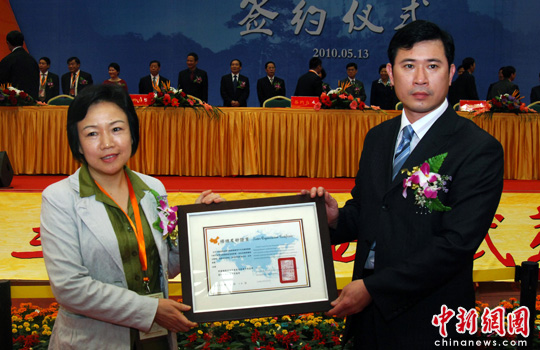 5月14日,高雄市聯(lián)合貿(mào)易促進(jìn)會(huì)(右)與中國貿(mào)促會(huì)南平支會(huì)(左)雙方代表在武夷山簽約締結(jié)為姐妹會(huì),第十三屆海峽西岸武夷國際投資洽談會(huì)大會(huì)為二會(huì)頒發(fā)締結(jié)友好證書。高雄市聯(lián)合貿(mào)易促進(jìn)會(huì)何主任表示,兩地貿(mào)促會(huì)簽約后首先進(jìn)行今年茶博會(huì)項(xiàng)目的合作,屆時(shí)兩地茶商可以有更好的平臺(tái)進(jìn)行交流。中新社發(fā) 張麗君 攝