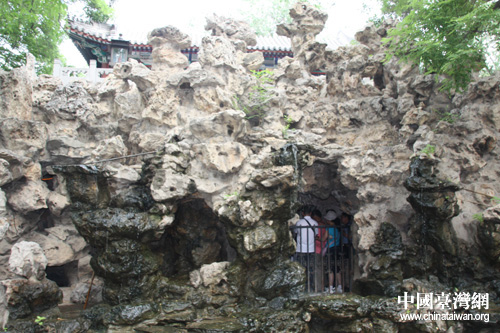 恭王府內(nèi)著名景點(diǎn)——滴翠巖,康熙御筆題寫的“!弊植赜趲r內(nèi)洞中。(中國臺灣網(wǎng) 肖燕 攝)