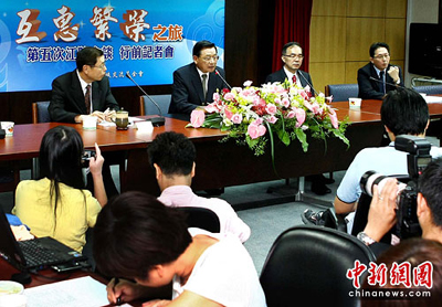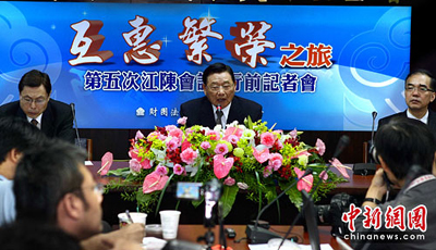 6月27日,臺(tái)灣;鶗(huì)就兩會(huì)領(lǐng)導(dǎo)人第5次會(huì)談在臺(tái)北舉行行程記者會(huì),;鶗(huì)董事長江丙坤在會(huì)上介紹情況并回答記者提問。江丙坤將于28日率18人的;鶗(huì)協(xié)商代表團(tuán)前往重慶,展開為期3天2夜的“互惠繁榮之旅”。29日,他將與海協(xié)會(huì)會(huì)長陳云林舉行正式會(huì)談,就兩岸經(jīng)濟(jì)合作框架協(xié)議(ECFA)、兩岸知識(shí)產(chǎn)權(quán)保護(hù)合作協(xié)議,以及兩會(huì)會(huì)務(wù)、未來協(xié)商安排等事宜進(jìn)行協(xié)商,并舉行兩協(xié)議簽署儀式。