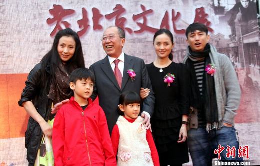 根據(jù)老舍代表作《四世同堂》改編的同名話(huà)劇定于30日在臺(tái)北孫中山紀(jì)念館開(kāi)啟首演大幕,被形容為“明星陣容”的劇中演員29日齊齊亮相臺(tái)北,為該劇首演造勢(shì)。這是大陸新編排的話(huà)劇,首次選擇臺(tái)灣作為首演地。圖為劇中的“祁家”——飾演祁老爺子的雷恪生、飾演祁瑞宣的黃磊、飾演韻梅的朱媛媛、飾演胖菊子的陶虹,以及從臺(tái)灣選出的兩名飾演孩子的演員,一同登臺(tái)亮相。中新社記者 王健 攝