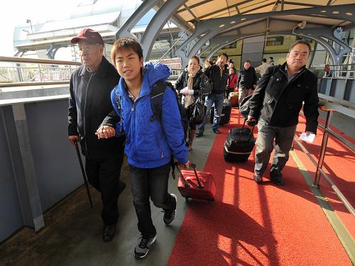 1月2日,臺(tái)胞在廈門(mén)通過(guò)安檢通道準(zhǔn)備登船。新華社記者 魏培全 攝