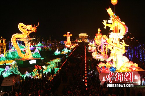 “神龍躍兩岸,盛世共和諧”2011江蘇(揚(yáng)州)燈會(huì)今晚(29日)在揚(yáng)州瘦西湖畔宋夾城正式亮燈迎客,中共江蘇省委書記羅志軍、江蘇省副省長(zhǎng)張衛(wèi)國(guó)等官員以及臺(tái)灣海峽兩岸觀光旅游協(xié)會(huì)會(huì)長(zhǎng)賴瑟珍率10多位臺(tái)灣觀光業(yè)界代表專程抵揚(yáng)州參加燈會(huì)亮燈儀式。